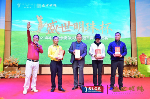 伴随着新明珠集团叶德林董事长的祝酒词,大家在举杯中开启了本场配对赛的颁奖及抽奖互动环节。当天比赛设立了多个奖项,包括总杆冠军、亚军、季军奖;净杆冠军、亚军、季军奖;最远距离奖,最近旗杆奖,小鸟奖等,所有获奖球员都获得广东新明珠酒业特别赞助的奖品。参赛嘉宾们畅意挥杆,收获惊喜,不虚此行。