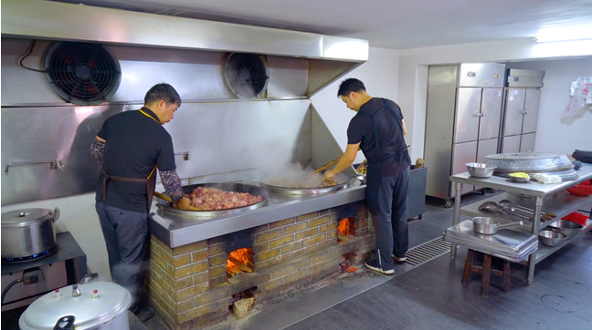 一锅羊肉做得好不好,关键看火候,这是一个技术活,全靠厨师多年来积累的经验和眼力。“全部制作完成需要三个多小时,焖煮的时候每二十分钟就要翻炒一次,不同时间段的火候都不一样,火太大太小都会影响肉质。”陈伟强说,因为羊只大小、脂肪含量等因素决定着火候的变化,所以只能依靠人工,机器是生产不出来的。
