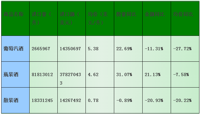首先我们看看酒类进出口商分会统计的第一季度数据: